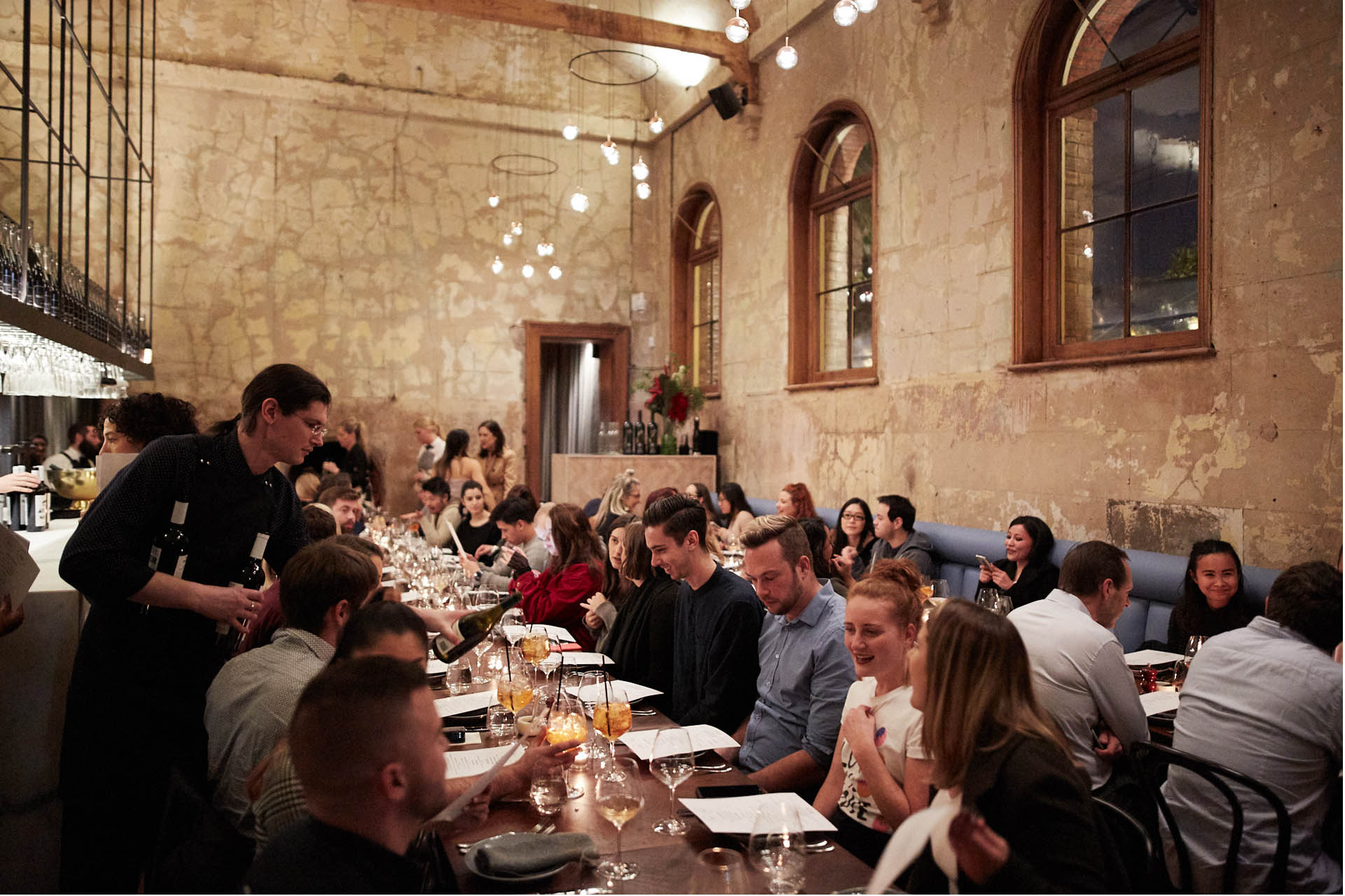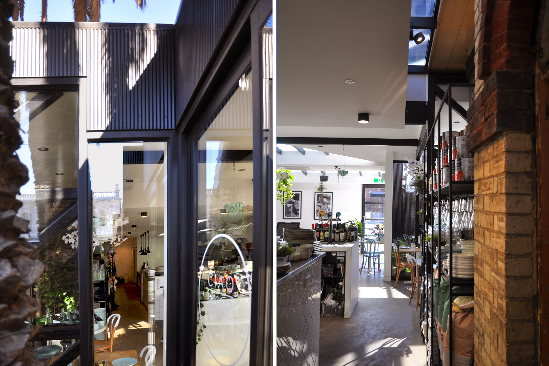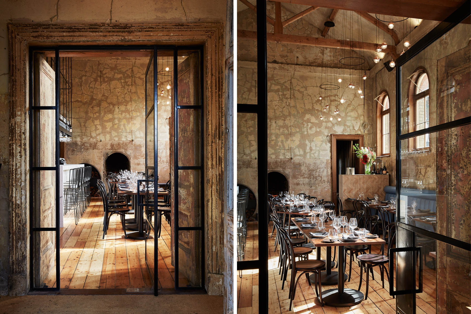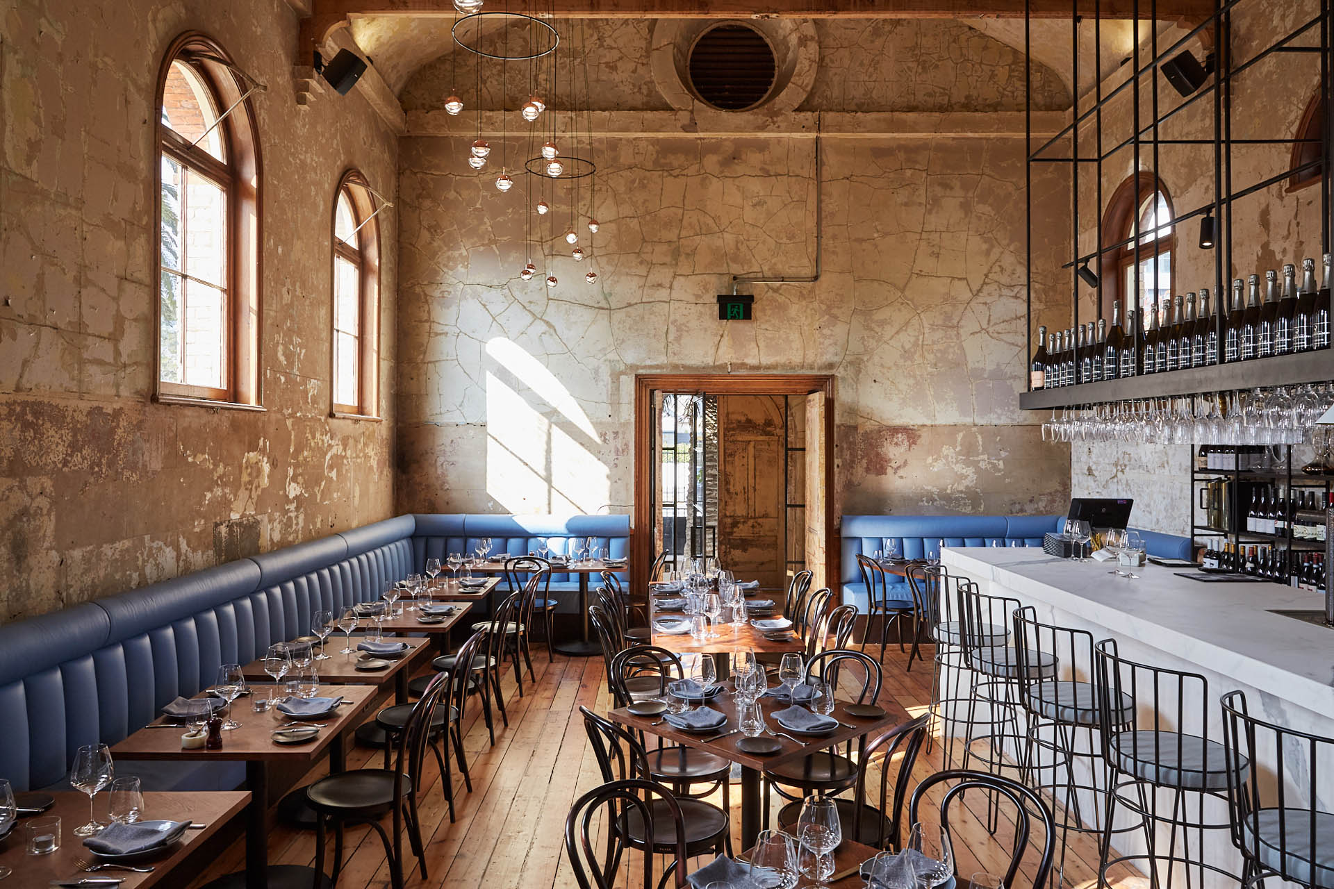 The passage of time has cast a Piranesian character over the 1860 Port Melbourne Courthouse providing a beautiful textural patina against which the refined modern interventions counterpoint. A white and grey veined porcelain bar, crowned by a suspended tracery of steel housing glasses and spirits provides the centrepiece in a sea of timeless thonet chairs and tables surrounded by a leather upholstered banquette. To support the dining hall, a deferential extension shadows the heritage structure accommodating state of the art expansive cooking facilities, amenities, stores as well as a casual eating space. The connection between historic and new is carefully delineated through a glazed rooflight which also illuminates the textural character of the historic brickwork. In addition large skylights with suspended planting trangress the casual eating area and together with glazed folding doors opening up to the garden, imbue a relaxed outdoor ambience.