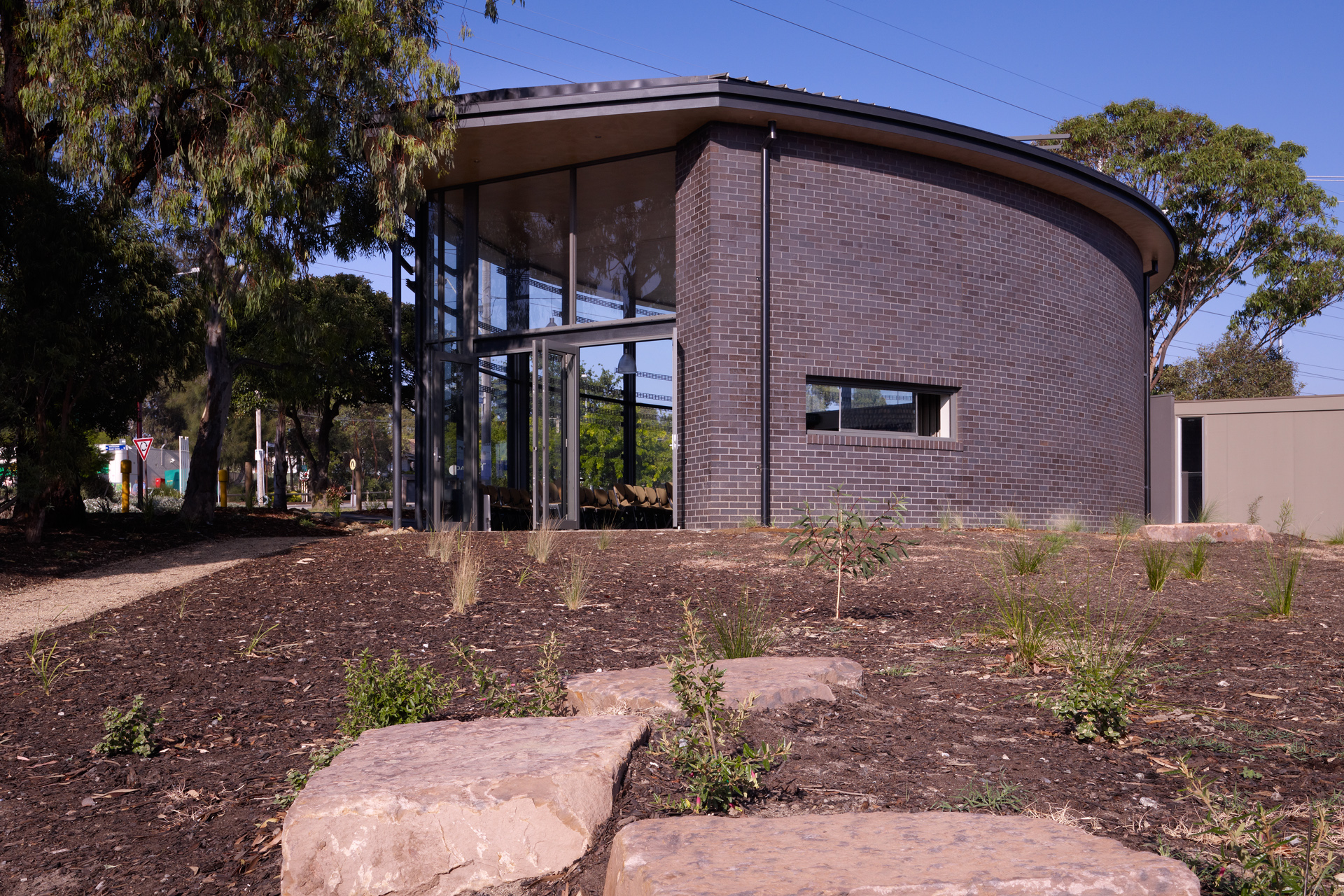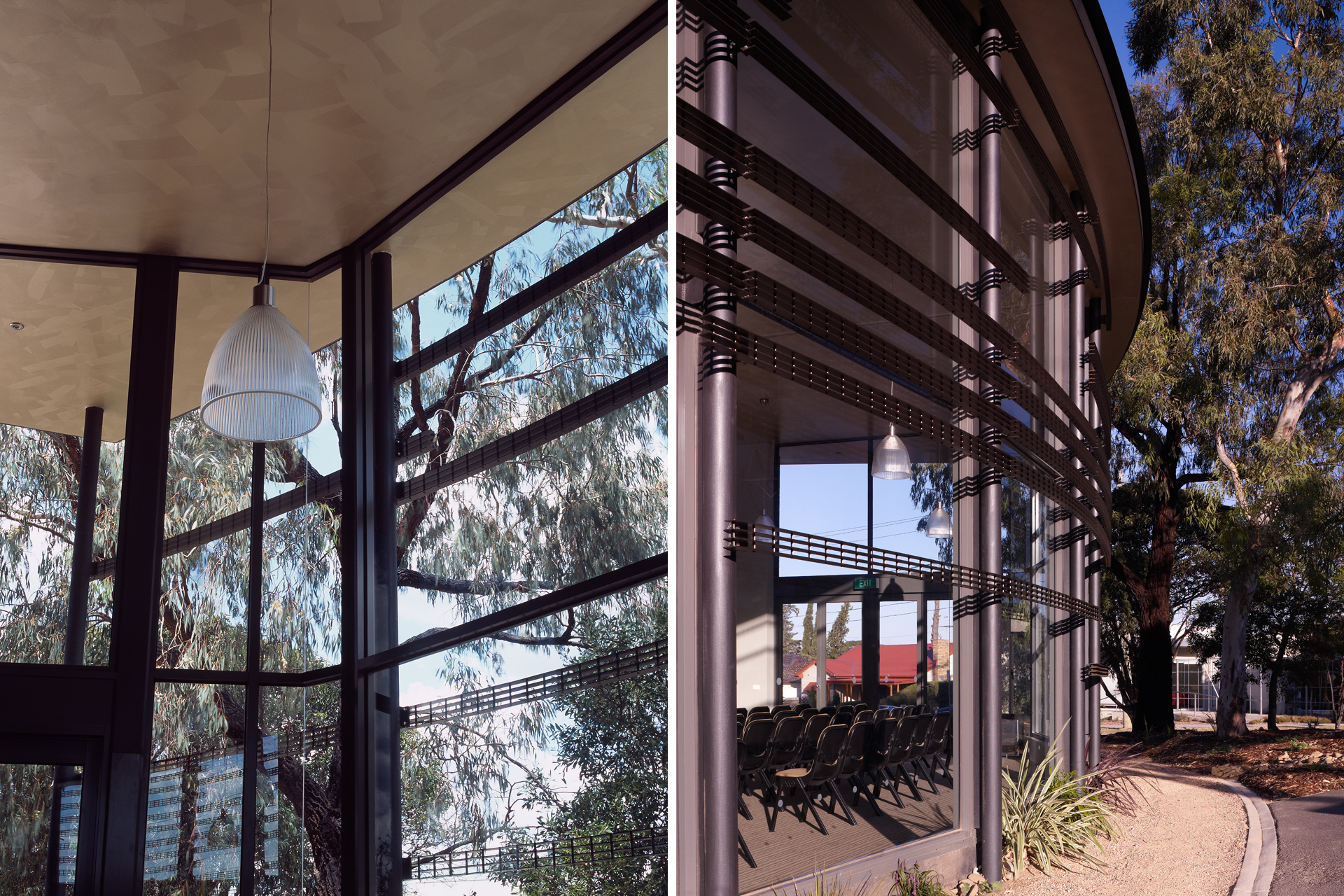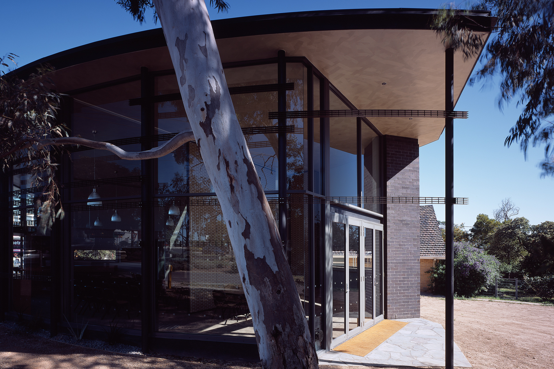 The worship space embraces Watsonia through its open and welcoming façade and forecourt.  The space itself is divisible into three: narthex, worship space for 55 people and meeting space or can be united to provide for larger gatherings. A solar protected rooflight introduces light and imbues an expression of time over a stainless steel cross incised into the curved white reredos.  The holy table and sanctuary furniture have been designed in oiled solid American oak accompanied by raw black steel.