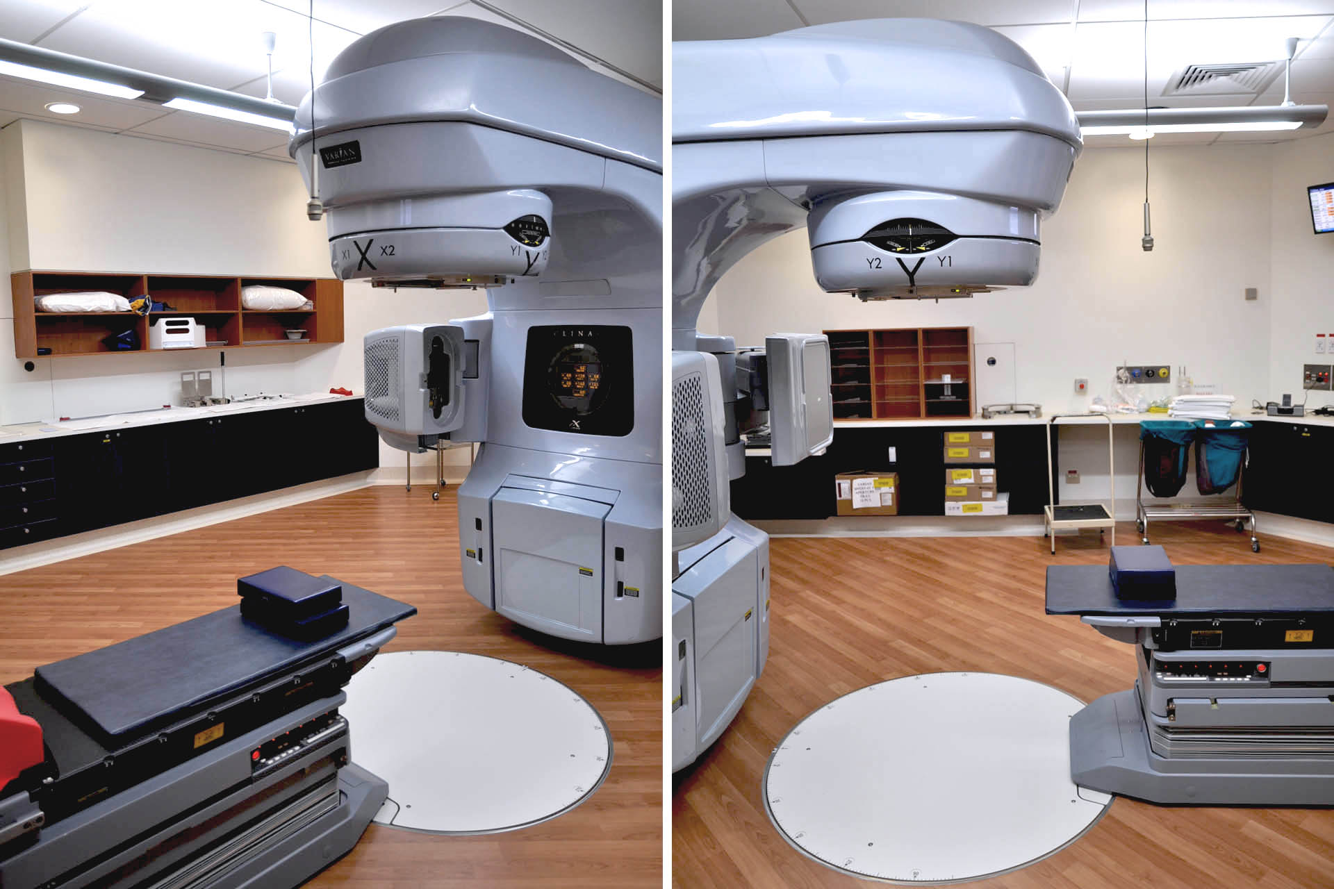 Two of the megavoltage therapy bunkers with their control rooms and adjacent facilities have been upgraded to accommodate Varian HE linear accelerators. As part of the upgrade the rooms were fully refurbished including reconfiguration of mass concrete and steel plate radiation shielding, modifications to the concrete pits and trenches to support differing base frames and servicing, new acoustically treated electrical modulator rooms, removal of neutron doors and rearrangement of chiller plant.