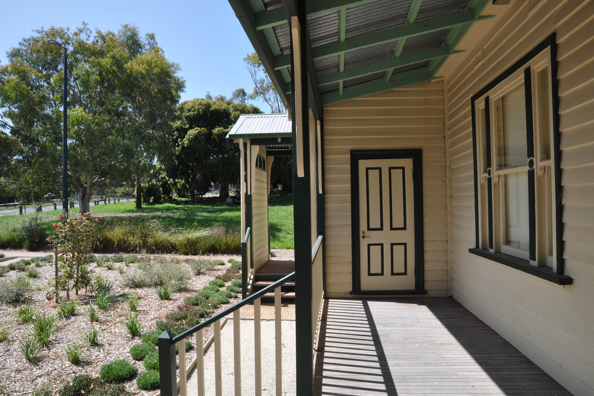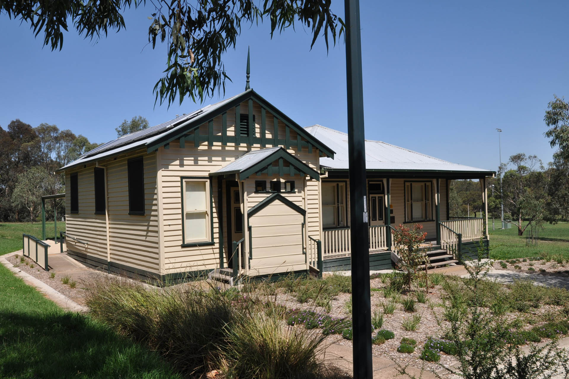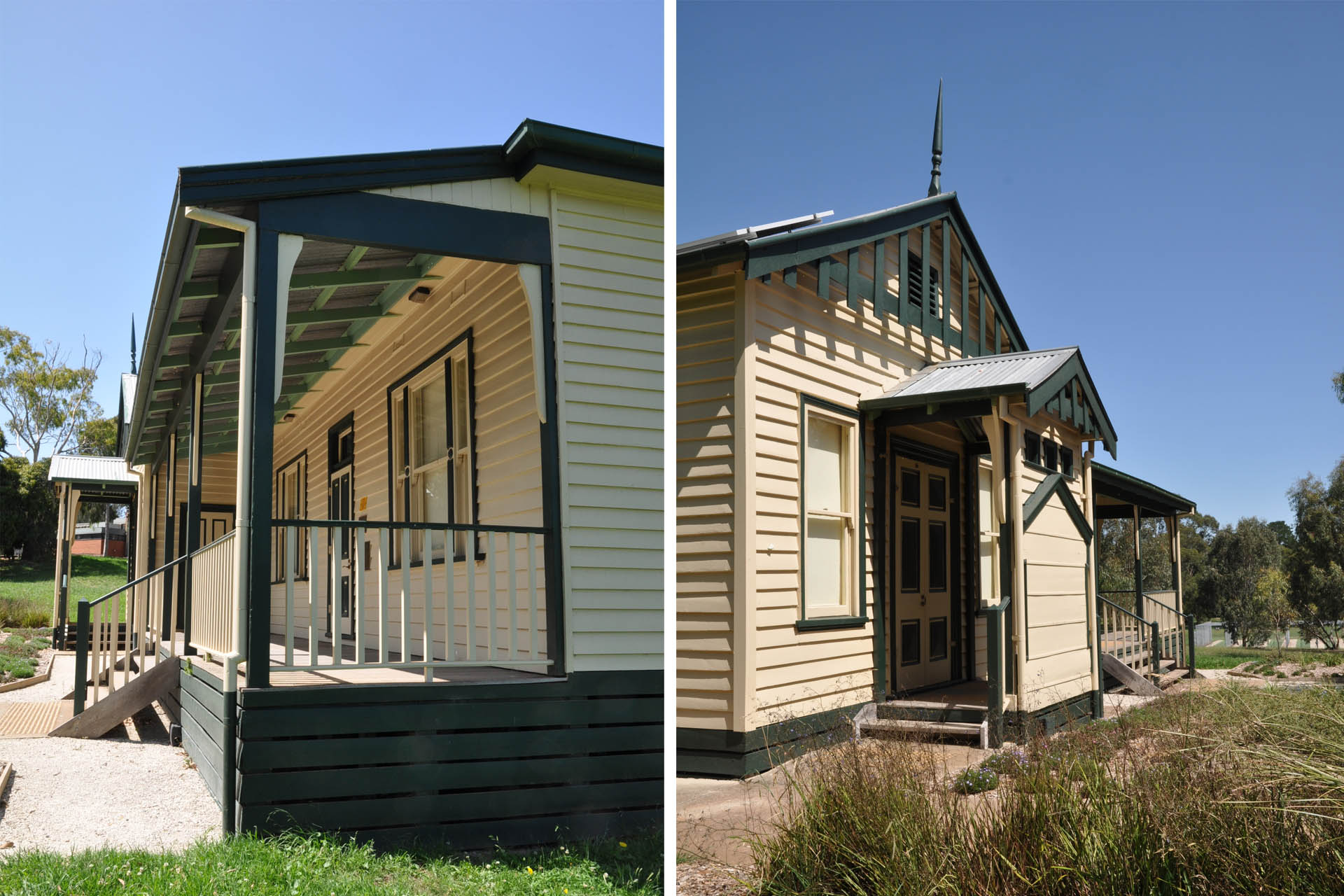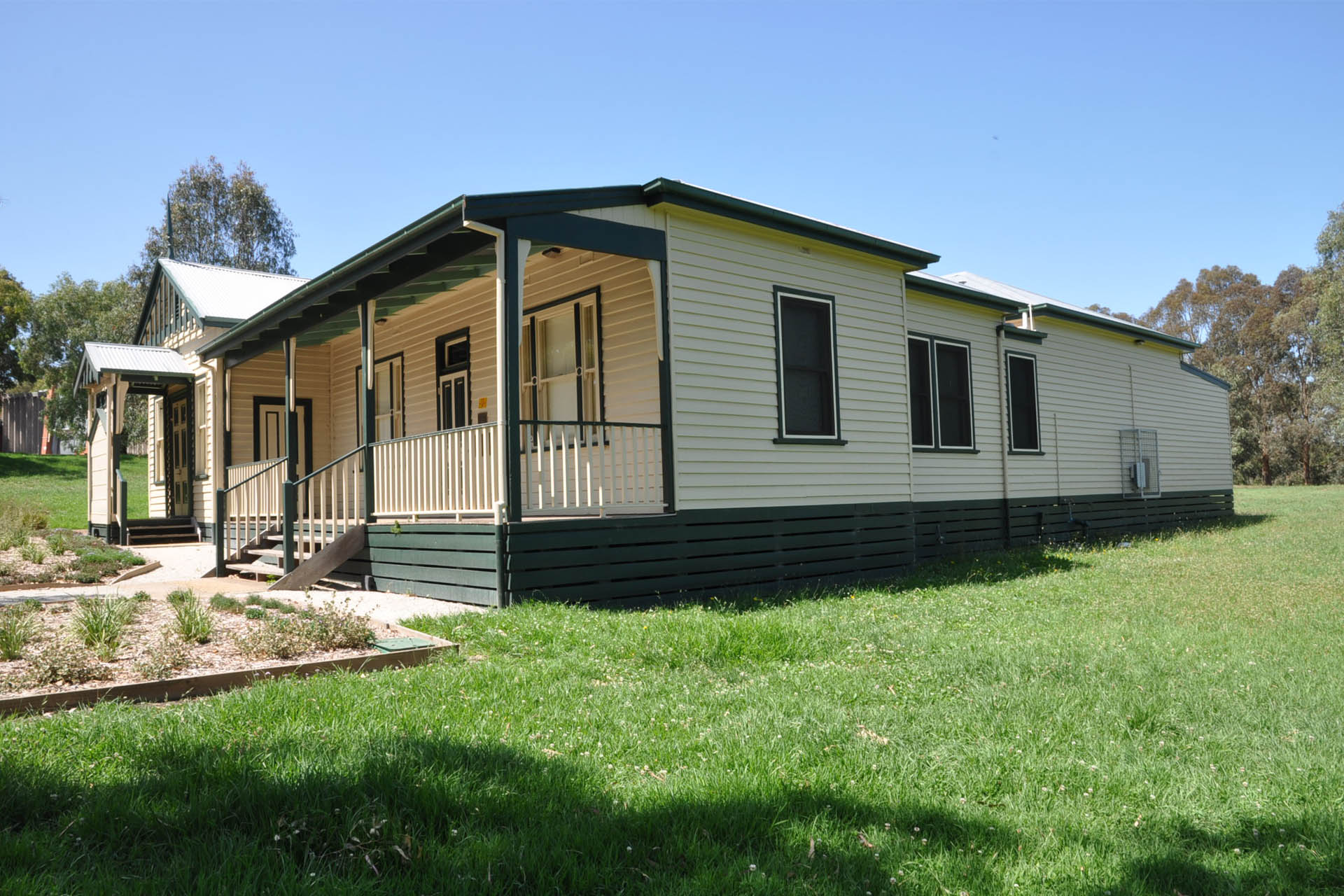 The weatherboard clad and corrugated iron roofed gable form of the 1859 Heidelberg Court House was extended in 1889 to house the Heidelberg Shire Offices and in 1909 a porch and verandah were added with design input from the renown Arts & Crafts architect Harold Desbrowe-Annear. In 2004 when a major redevelopment of the Austin Repatriation Hospital required the site, the Old Shire Offices were relocated to the Waringal Parklands and extended to serve as a new community centre. The building was cut into three with extensive bracing installed to facilitate the 5 km passage. The extension to the rear was designed to be subordinate to the heritage structure and sympathetic in form and materials. Open and enlarged meeting spaces were formed and supplemented by contemporary kitchen and toilet facilities. A garden empathetic to early nineteenth century landscape design serves as a forecourt.