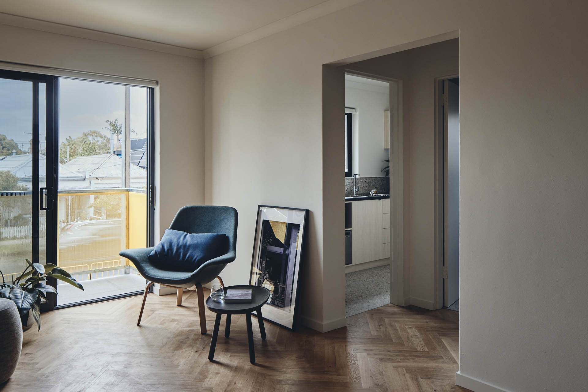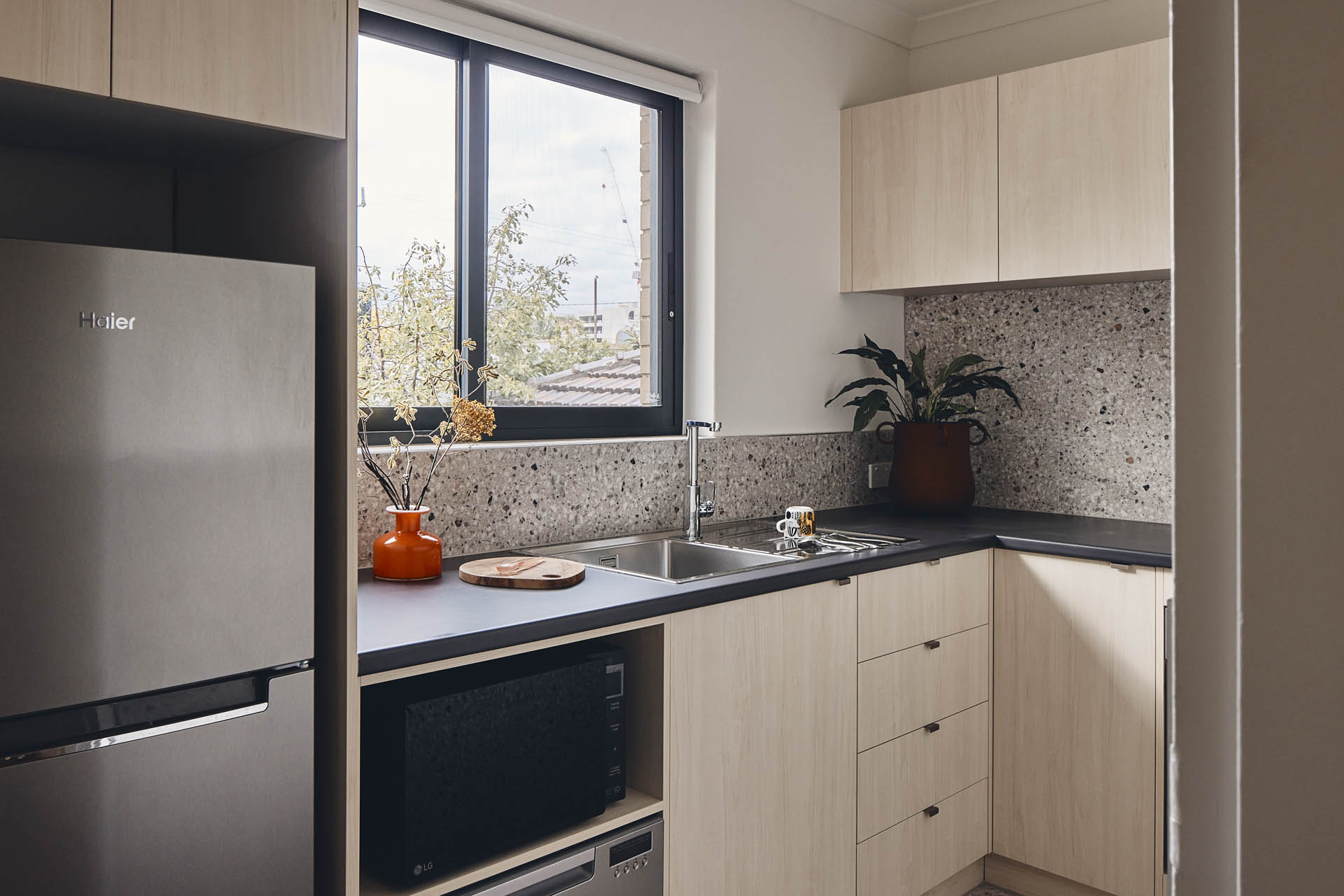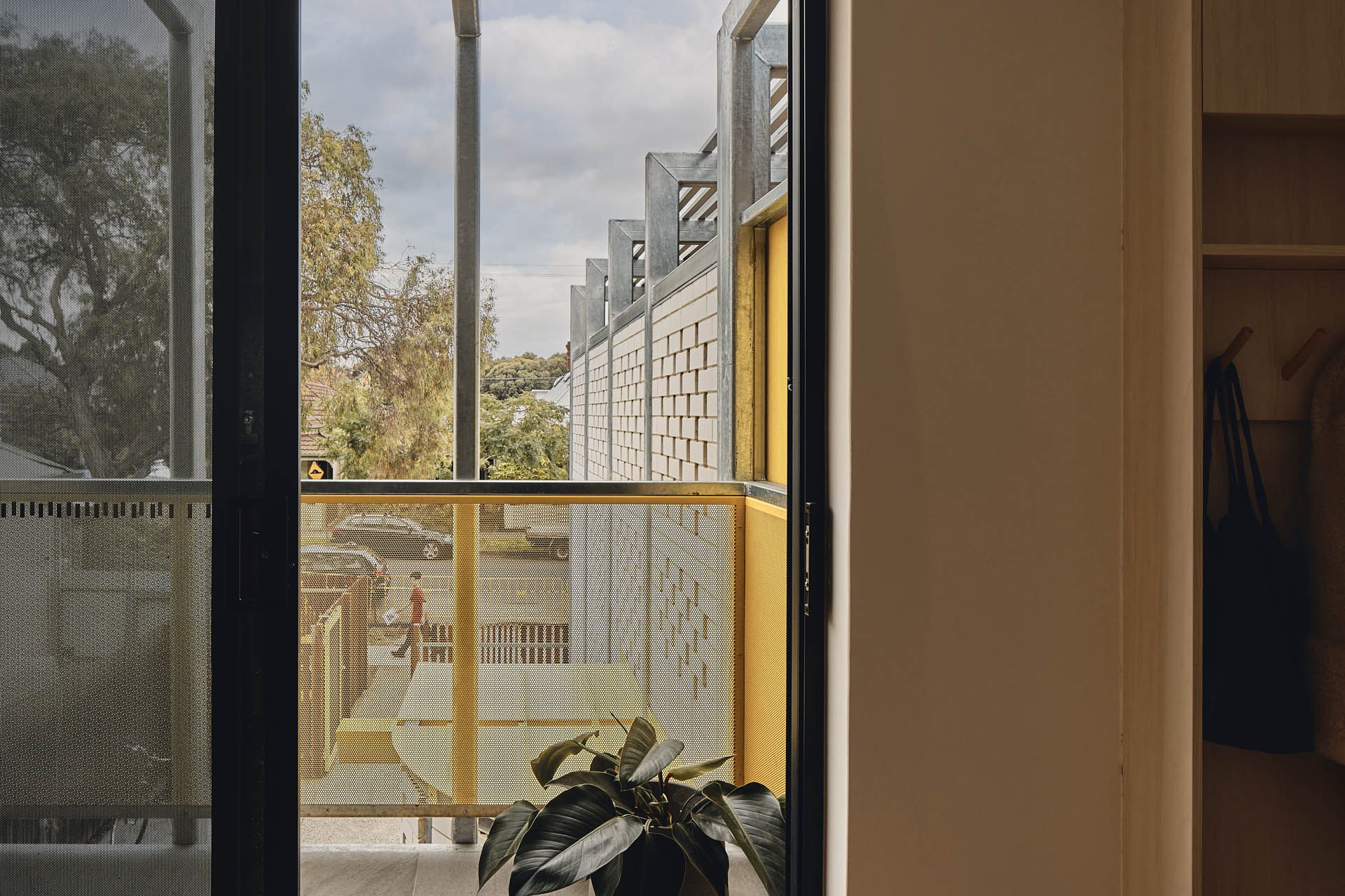 A tired, archetypal, suburban six pack apartment building, close to public transport, bicycle paths and shops in Brunswick, has been philanthropically transformed into Launch Housing’s Home Ground emergency and low-cost, social housing. The building envelope was bolstered by the introduction of thermally insulated roofing, double glazing throughout with full height sliding doors to living spaces allowing their extension onto balconies and private, landscaped gardens. Internalised, walled staircase and foyers together with a walled frontage have greatly enhanced personal security for residents. The abolition of gas augmented by an extensive photovoltaic solar collection system significantly reduces the carbon footprint and fosters operational energy independence. Interiors are rejuvenated with new kitchens, bathrooms, finishes, lighting and fittings.